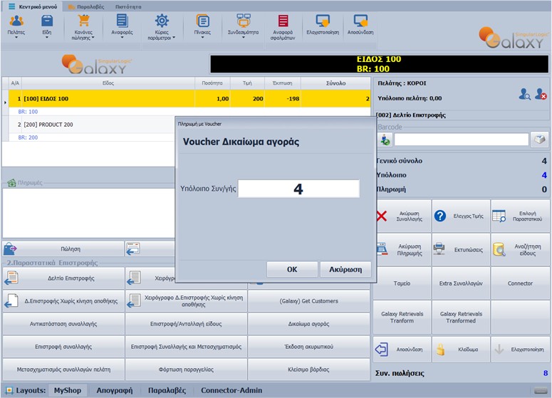 - ανοίγει η οθόνη Voucher Δικαίωμα αγοράς με την αξία της συναλλαγής